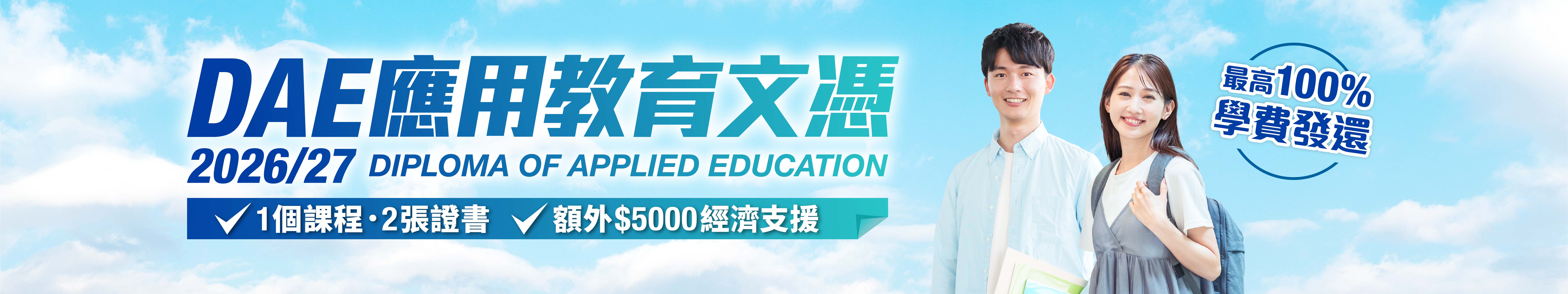 2025/26學年DAE兼讀制課程將於2025年12月下旬開課,請按此了解詳情。