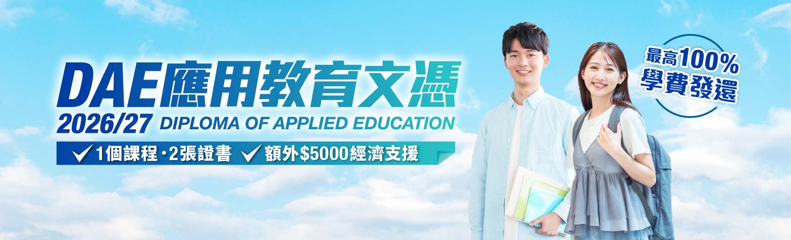 2026/27學年DAE全日制課程將於2026年9月開課,現正接受報名!![]()